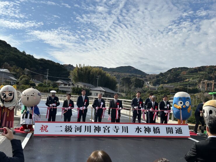 水神橋開通式 12月16日の浜松市北区にある神宮寺川に掛る水神橋が完成し開通式が開催されました。 測量設計業務に携わる機会があり静岡県浜松土木事務所より招待されました。 地元の人達はこの橋が出来ることで利便性があがり大変満足されていました。
